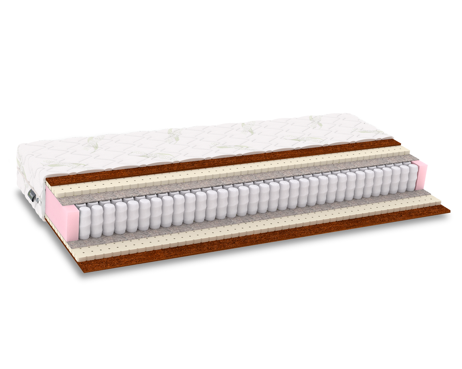 Комфортний двосторонній матрац середньої жорсткості з ефектом зима-літо на основі незалежного пружинного блоку Pocket Spring. Матрац складається з натуральних шарів: латексу та кокосового волокна. Латекс пом’якшує дану модель та в комплексі з кокосовим волокном надає виробу анатомічних та ортопедичних властивостей. Латекс має перфорацію по всій своїй площині, що забезпечує циркуляцію повітря всередині матраца. Чохол матраца з трикотажної стьобаної тканини – надає м’якість та комфорт спальному місцю.